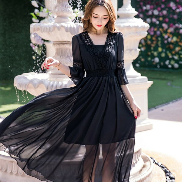 ~蕾絲花邊大V領~優雅七分喇叭袖~大裙襬雪紡洋裝~請參考胸圍,腰圍尺寸表選購唷!, 灰姑娘[98589-QF]蕾絲花邊大V領優雅七分喇叭袖大裙襬雪紡洋裝~春夏洋裝~。在樂天市場的灰姑娘衣著館有最棒的商品,是您省錢的最佳選擇。